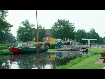 Auf der Landkarte sind die Fehnkanäle oftmals nur als feiner, blauer Strich zu erkennen. Auf der Fahrt durch die Gemeinde Uplengen ist der Nordgeorgsfehnkanal dem Radwanderer jedoch auf fast 30 Kilometer Länge ein steter Wegbegleiter. Noch um die Jahrhundertwende war dieser Kanal, der auf seinem langen Weg von Wiesmoor bis Stickhausen den Ems-Jade-Kanal mit dem Jümmefluss verbindet, ein bedeutender Transportweg für Torf, Baustoffe und alle anderen Güter, die in den Moorkolonien benötigt wurden.