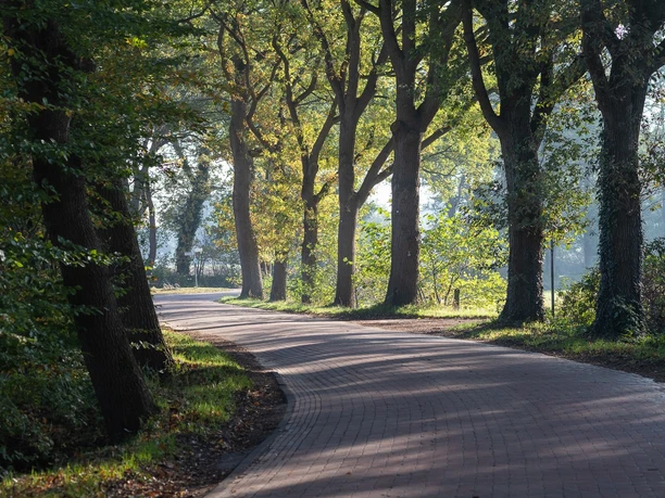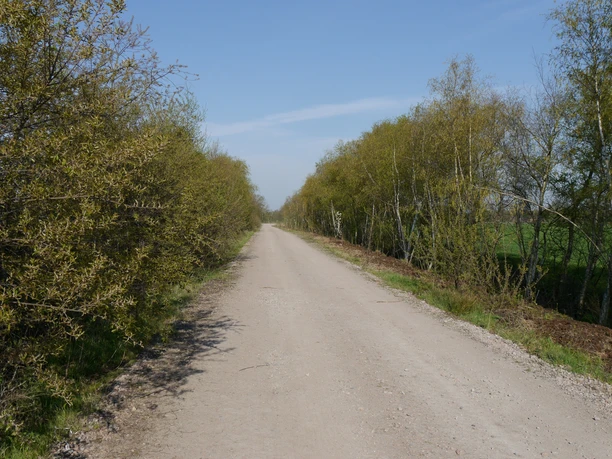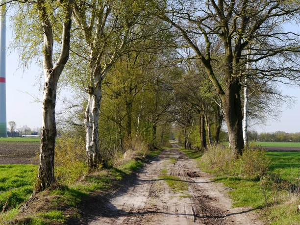 Der Rundwanderweg beginnt bei der Abzweigung der Bauernhörne von der Osterschepser Straße. Gleich zu Beginn der Bauernhörne befindet sich links das Ehrenmal für die Verstorbenen der Kriege und die dort befindliche mächtige „Friedenseiche“. Der alleeartigen Klinkerstraße Bauernhörne folgend, erscheint nach wenigen Metern rechter Hand unübersehbar die Erhebung „Osterschepser Esch“ (Infos auf Informationstafel). Bevor man den „Esch“ erwandert, geht es aber erst einmal weiter entlang der Bauernhörne. Alteingesessene „Hausmann- und Köterstellen“ befinden sich links und rechts der Straße, da die erste Besiedlung von Osterscheps hier am Rande des Esches erfolgte. Nach dem letzten Hof geht es rechts in den Plackhoff, einen Schotterweg, der am Fuße des Esches in die Aueniederung führt. Nach wenigen hundert Metern wird die „Karlsbrücke“ erreicht, von der sowohl wunderbar die „Aue“ mit ihrer Niederung betrachtet werden kann als auch in nördlicher Richtung der „Osterschepser Esch“. Kaum zu glauben ist, dass über diesen kleinen Fluss im 19. Jahrhundert in Edewecht erbaute seetüchtige Schiffe zur Nordsee gebracht wurden. Ein Edewechter Kapitän ist mit einem davon sogar bis nach Neuseeland und Australien und zurück gefahren. Weiter geht es ab hier auf dem baumgesäumten Schotterweg bis zur Straße Baven Water. Hier gibt es zwei Möglichkeiten: Geradeaus führt die längere Strecke mit circa sieben Kilometern und rechts ab die kurze Strecke mit circa dreieinhalb Kilometern.